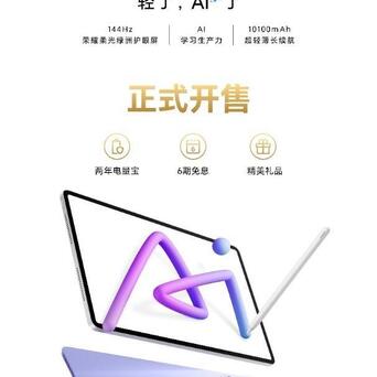 作为AI学习平板的全新标杆,荣耀平板V9首发搭载荣耀MagicOS 9.0系统,通过丰富的AI笔记AI文档能力、10100mAh轻薄长续航、144Hz荣耀柔光绿洲护眼屏以及多项领先的软硬件配置,全面覆盖学校上课和日常出行场景,是提升学习和工作生产力的可靠伙伴。首销期间荣耀平板V9除了价格优惠,还提供两年电量宝、6期免息及精美礼品,有购买需求的朋友不要错过优惠黄金线上十倍杠杆,当做新年礼物送给家人和朋友也是不错的选择。