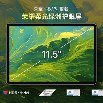 荣耀平板V9搭载11.5英寸荣耀柔光绿洲护眼屏,拥有2.8K超高清分辨率,支持30Hz至144Hz八档可变刷新率调节,能够通过类自然光护眼、AI离焦护眼、助眠显示等功能有效减轻视觉疲劳。柔光屏版本屏幕采用全新AG玻璃蚀刻技术,能够消除98%环境干扰光,抗噪点能力提升20%,书写时轻微振动,带来纸质般书写体验。